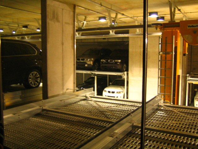 ) noch in der "Wartehalle". Dort werden die Fahrzeuge vor der Auslieferung geparkt.Es ist ein langer Gang mit Hochregalen, in dem vollautomatisch ein Kran die jeweiligen Fahrzeuge verstaut. Wenn ich es richtig in Erinnerung habe passen ca. 80 X-Modelle und 150 normale Modelle in den Speicher.