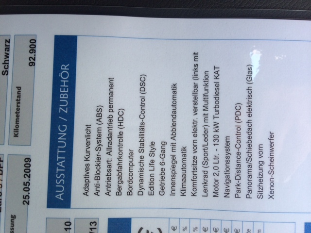 Unten hab ich die Daten mal abfotogfrafiert.... der Preis ist vor Ort 22.990€ Internet 20.990€ aber er wird nochmal "reduziert" auf 19.990€ Hatte ein Heckschaden den der Händler aber aufgekauft hat und selber repariert hat. Der Wagen steht bei einem sehr seriösen und Jahrzehnte alter Händler. Wir haben damals sogar für das Autohaus lackiert.. man "kennt sich" also :D