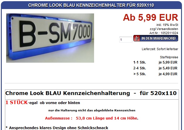 Bei mir funzt der Link, genau auf den blau verchromten Kennzeichenhalter
