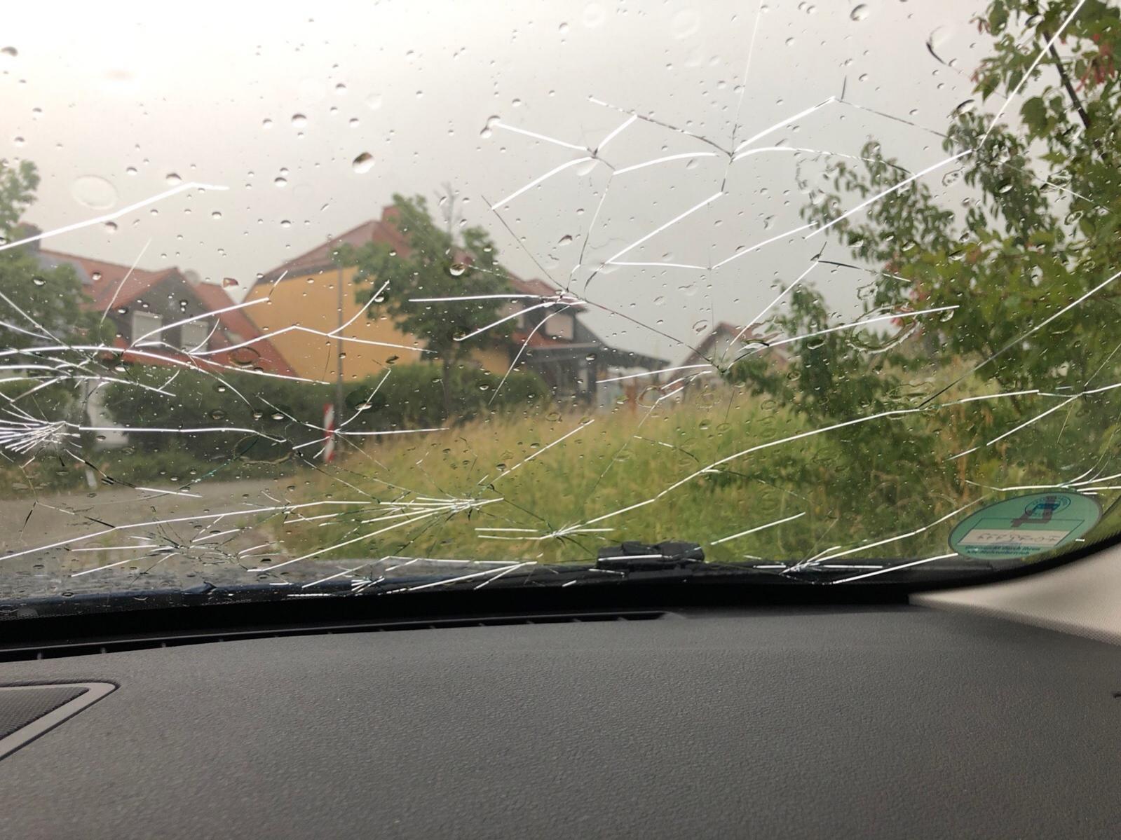 Ein paar Bilder zum Schaden, damit ihr euch vorstellen könnt, was da los war - Hagelkörner mit Golfballgröße.