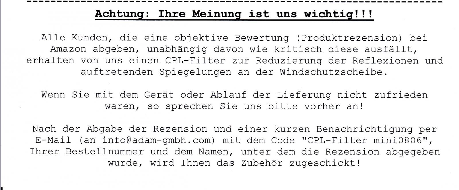 Für alle, die diese Kamera bestellen wollen, noch ein kleiner Tipp. Bestellt erst mal keinen Polfilter mit! Als ich die Packung öffnete kam mir ein kleiner Zettel entgegen: