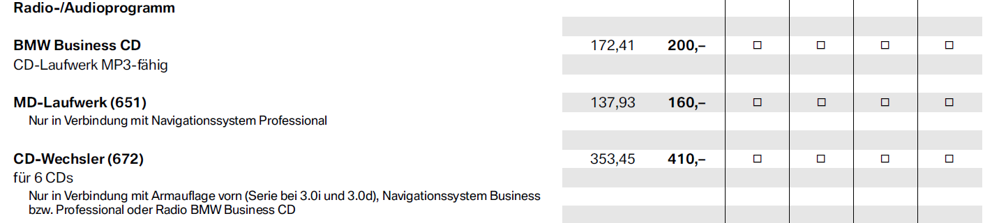 Ich meine nämlich, dass das Radio BMW Business CD (egal ob als reines Radio oder im Navi Prof) erst ab 09/2004 mp3-fähig ist.Gruß vom Rand der Lüneburger Heide