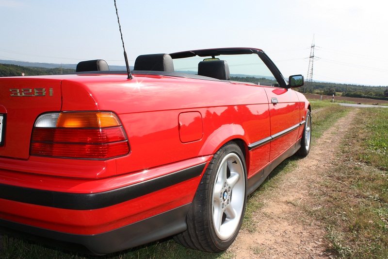 der sieht richtig klasse aus. Originalzustand, und super Pflegezustand. Dazu hat der Motor richtig Power, was willst du mehr. Natürlich kommt er mit den heutigen Sicherheitsausstattungen nicht mehr mit, aber dafür kommen die heutigen Cabrios nicht mit dem Aussehen des E30,E36 und auch E46 mit.