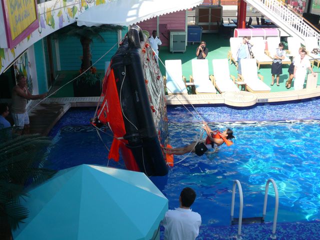 Und dann war da noch Rom... Diese unendliche Stadt liegt am Tiber, und war vor vielen Jahren, das Zentrum der Macht des mächtigen römischen Reiches. Die Stadt wuchs von einer unwichtigen Siedlung, zu einem gewaltigen Reich über das eine Reihe von Kaisern herrschten. Im 15. Jahrhundert erfuhr Rom eine zweite Entwicklung: Während der sogenannten Renaissance wurde die Stadt zum Sitz des Papstes. Bis heute ist Rom der Sitz der italienischen Regierung. Unser Anlaufhafen ist Civitavecchia. Der Hafen und die Umgebung sehen von weitem nicht nach einer Stadt aus, eher nach einem Industriegelände. Um nach Rom zu gelangen, musste man, nach der üblichen Fahrt durch den Hafen, noch eine Busfahrt von ungefähr 1,5 Stunde in Kauf nehmen. Wir waren der Meinung: „Da Rom ja bekanntlich nicht an einem Tag erbaut wurde, bräuchte man auch mehr als einen Tag, um es zu erkunden“. Anstelle von einer mehrstündigen Busfahrt, und einem anstrengendem Spaziergang durch eine Stadt, mit geschlossenen Geschäften, wäre es sehr viel gemütlicher auf dem Schiff. Insbesondere, da wir mit dem Papst ja schon zusammen in New York waren. Langweilig war es auch nicht. Da fast alle Leute von Bord gingen, nutze die „Security“ den Pool für eine Rettungsübung mit einem Teil der Crew. Etwa 12 Leute mussten, angezogen, mit einer Rettungsweste versehen in den Pool springen, und nacheinander probieren eine Rettungsinsel umzudrehen. Eine Aufgabe die gar nicht so einfach war. Ich hoffte, das wir nie in den Fall kommen würden. Ich wüsste nämlich nicht, wie ich es schaffen würde auf diese Insel hinaufzuklettern. (und das hat nicht nur etwas mit dem vielen Essen hier an Bord zu tun)