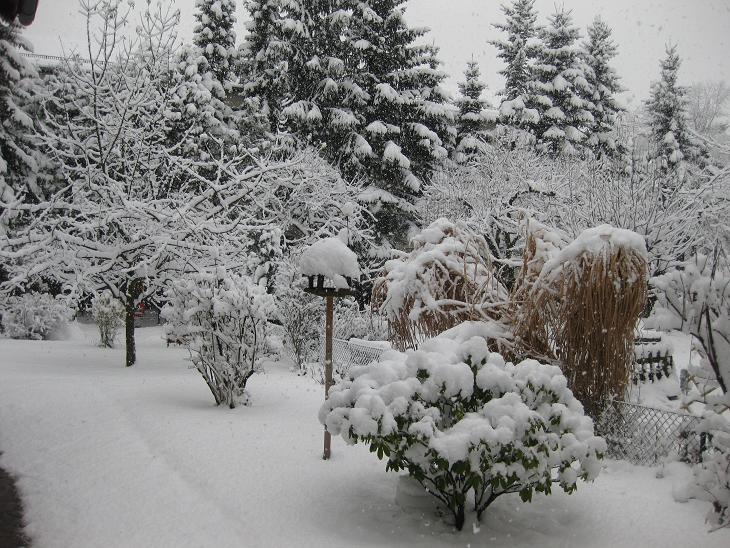 Ein Blick aus dem Fenster heute morgen (ich glaube, da folgt noch ein wenig Neuschnee....):