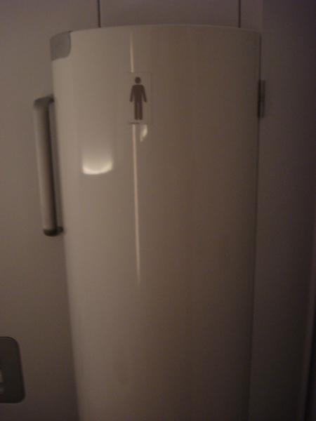 Hmmmm? Rechts ein Schrnier,links sieht aus wie ein Griff. Ich tippe mal auf eine Eingangstüre für eine Toilette