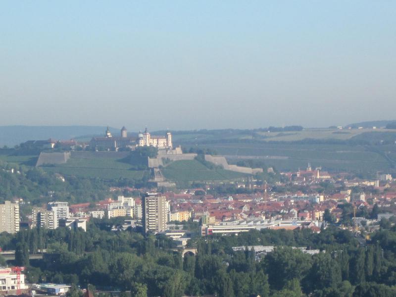 Vermutlich aus Richtung A3 aufgenommen. Im Hintergrund liegt der Flugplatz Würzburg-Schenkenturm