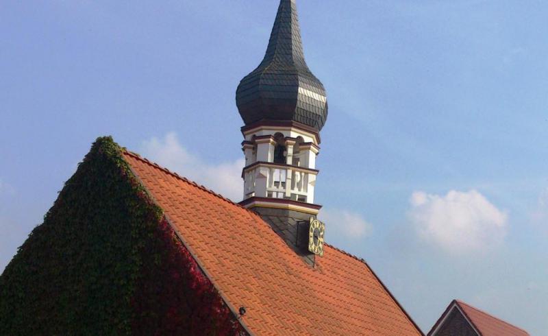 Die Kanone steht in einem Ort dessen altes Rathaus nun ein kleines Museum (was für ein Museum? ) ist und dessen Dach diese Spitze ziert.
