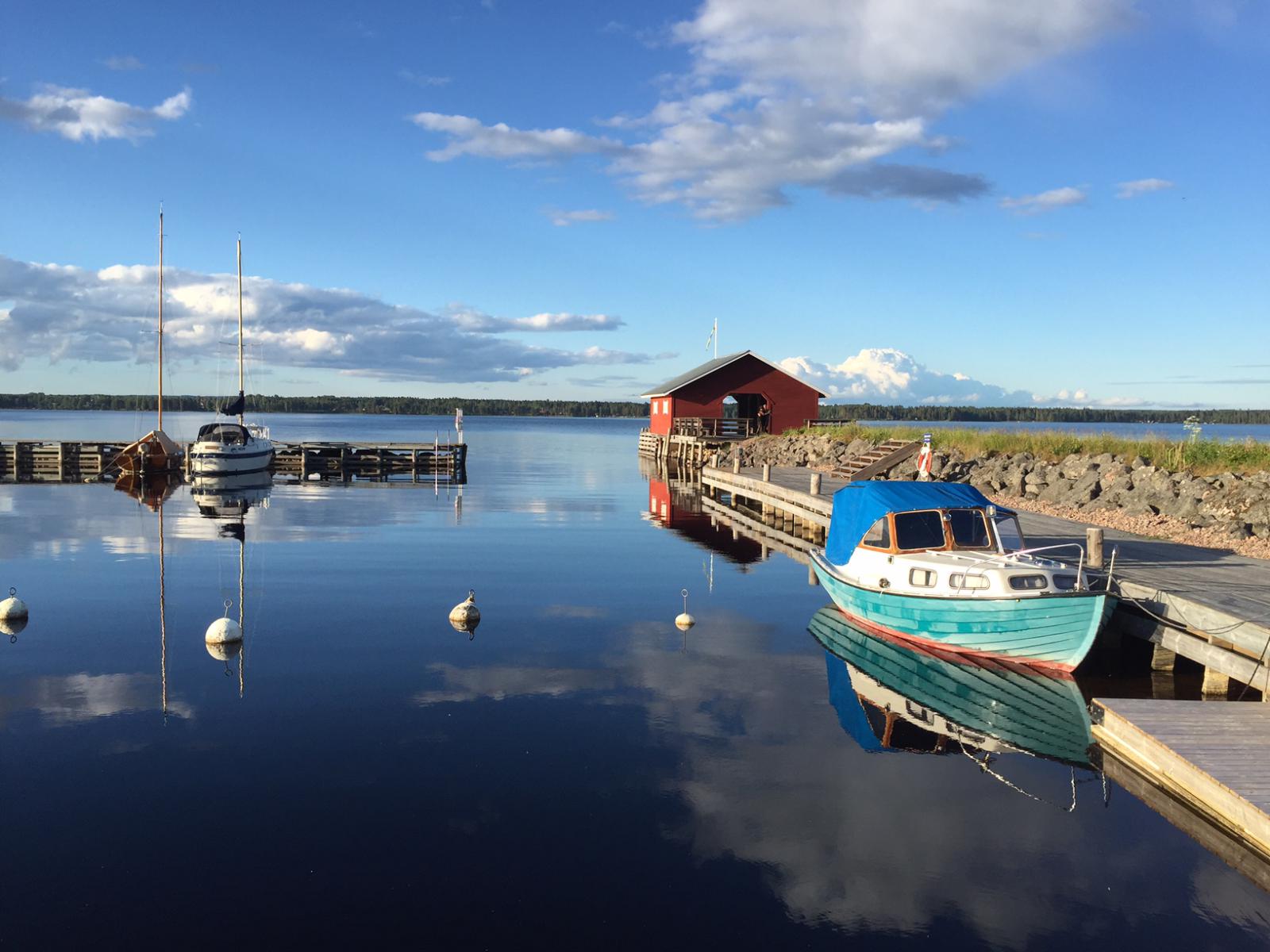 Heute Weitrfahrt ans Nordufer des Vänernsees und Bummel durch Karlstad, jetzt übernachten wir "in the middle of nowhere" am Ufer eines fjordartigen Sees.