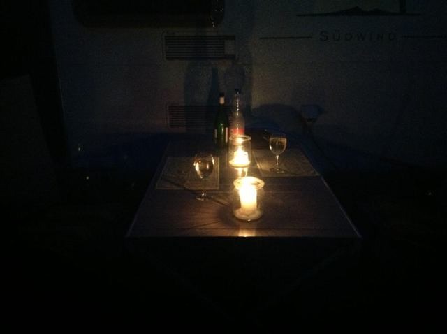 mit dem Wohnwagen im Schlepptau in elf Stunden sozusagen am Stück durchgerutscht.