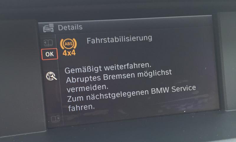 Klingt nicht so toll... kam die Fehlermeldung nach einem kurzen "Stop-Start" des Motors? Bei meinen alten F25 hatte ich so einen "Lichterbaum" ganz am Anfang. War das Zusammenspiel der Start-Stop Automatik, Bremse treten und wieder Gas geben zum weiterfahren. ..Gruß aus Thüringen