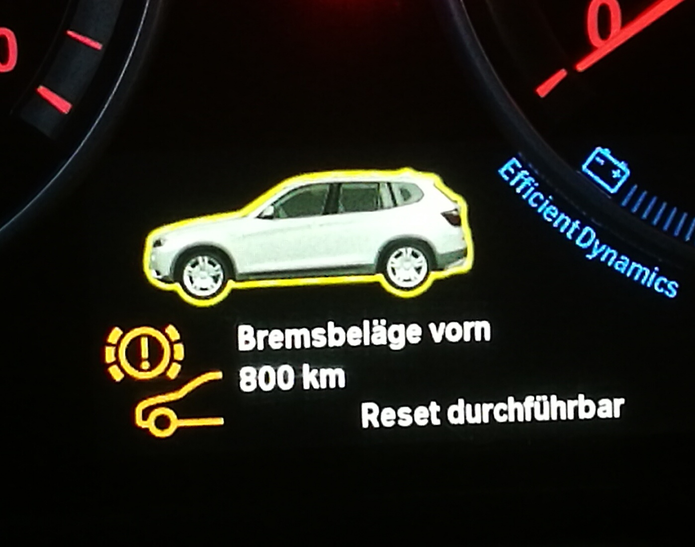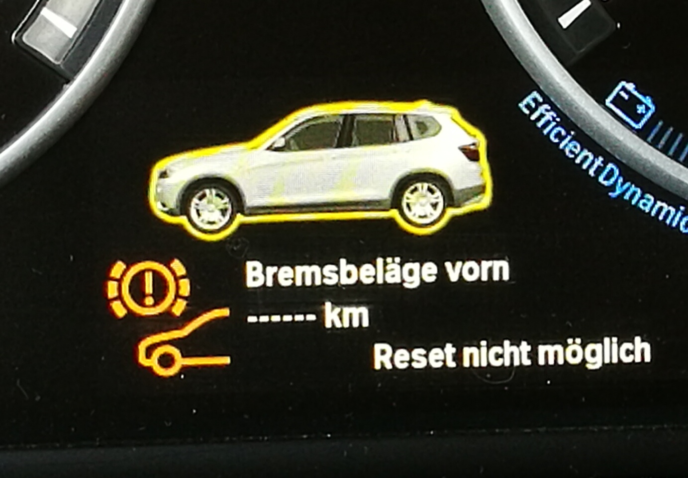 Das iDrive hat das ganze überzuckert und sendete mir den Hinweis, die Bremsbeläge wären zu tauschen, klar, der Wako spuckt ja jetzt keine Daten mehr aus.