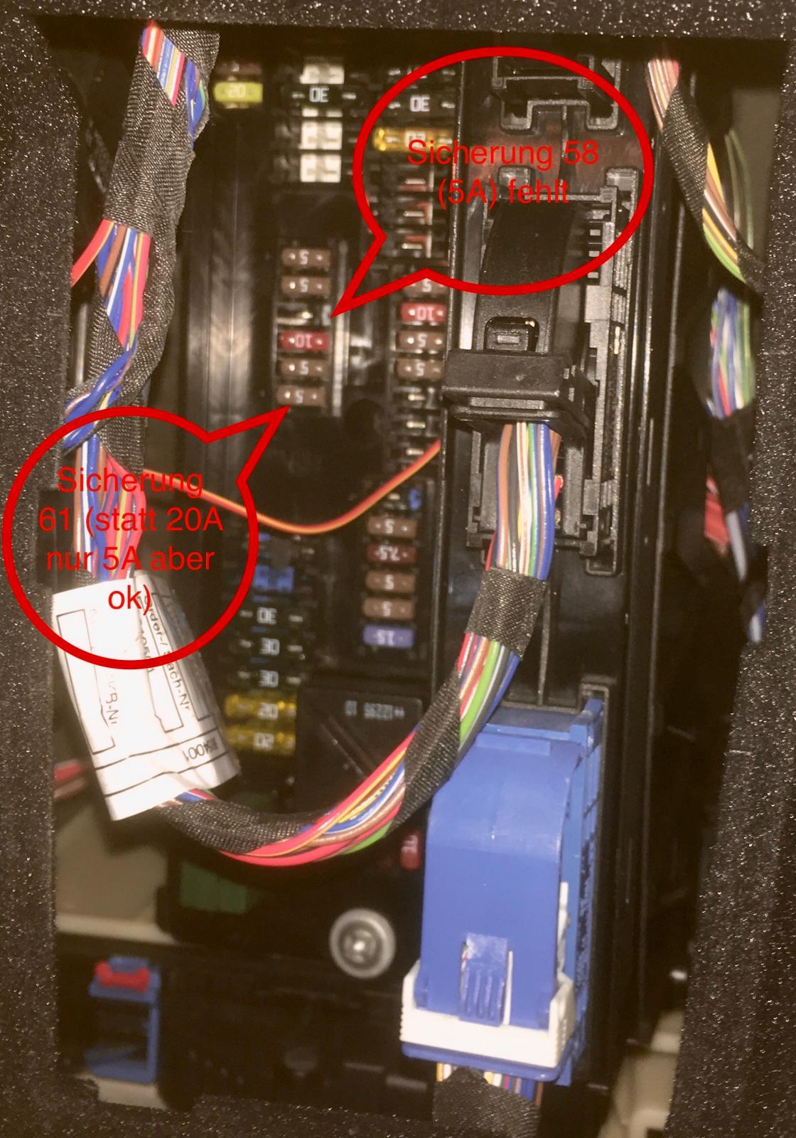 Die Sicherung 58 ist aber bei mir nicht bestückt und die Sicherung 61 hat 5A und ist auch ok.