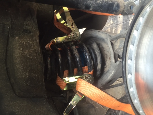 ich habe letztes WE die Federn aus- und wieder eingebaut um die Federunterlage oben zu verstärken. Dazu habe ich die "Forumsmethode" mit dem Wagenheber verfeinert, indem ich vor dem Lösen des Stossdämpfers die Feder mit zwei Spanngurten in ihrem zusammengepressten Zustand fixiert habe. Die Spanngurte konnte ich mit ein wenig Gefummel um vier Windungen der Feder legen. Ich habe schmale Spanngurte mit Ratsche verwendet, so dass ich gut Druck auf die Feder ausüben konnte. Dadurch hat sich der Weg um den ich die Achse nach unten drücken muss natürlich deutlich verringert.Bei vielen Autos ist vergessen worden alle Räder mit dem Motor zu verbinden.