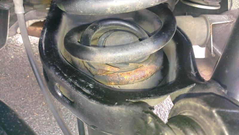 Hab ich beim Räderwechsel entdeckt. Die Federn scheinen immer an der selben Stelle zu rosten und dann brechen. An der Bruchstelle hat sich die Plastebeschichtung abgescheuert. Meine Neue habe ich jetzt an der Stelle zusätzlich mit Schrumpfschlauch überzogen. Mal sehen obs was bringt.