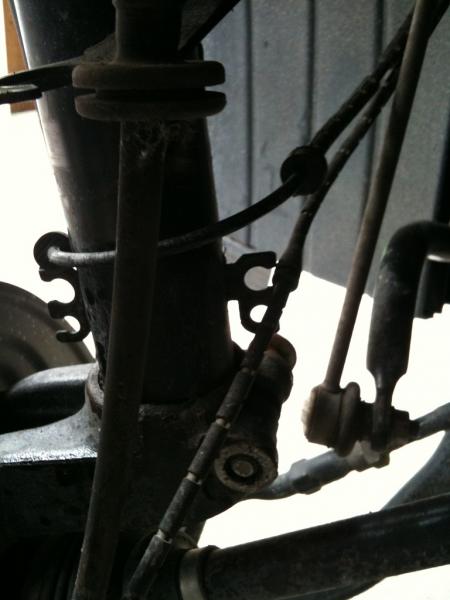 Nachdem die Feder draussen ist das ganze mit einem Holz unterlegen weil sonst ist die Bremsleitung voll durchgespannt.