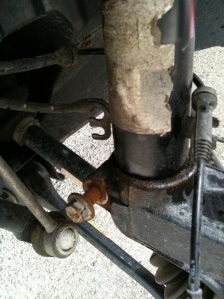 Teilweise mussten wir mit einem Hamemr vorgehen um die Feder rauszubringen. Darauf achten nicht die Bremsleitung zu beschädigen.