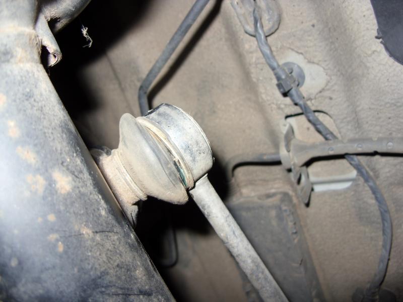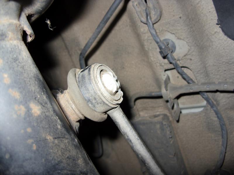 Habe dann an den Pendelstützen (Koppelstangen) gewackelt und sie da Spiel an beiden Seiten. Die rechte lässt sich verdrehen (siehe Bilder re. Pendelstütze / rechtes Federbein) die linke nicht.