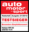 Nokian-Winterreifen ist der Testsieger im Winterreifen-Test 2012 von „auto motor sport“ mit „Sehr empfehlenswert“