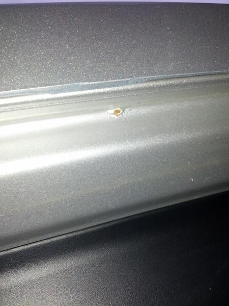Habe die bestreffende Stelle markiert. Wenn es nur ein Lackfehler ist, wäre es mir auch schnuppe. Wäre es aber tatsächlich Rost, würde ich gerne die Ursache schon im Keim ersticken wollen.