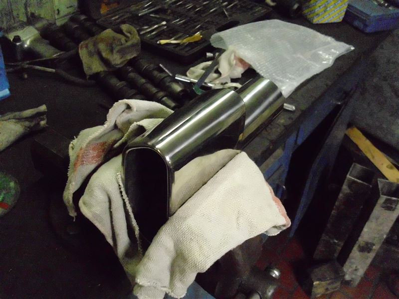 Auf den ersten Bildern sieht man den originalen Auspuff, der ziemlich weit raus steht. So musste ich das Anschweißrohr anpassen. Deckel hinten abtrenne, ca. 4 cm von der Blende kürzen und Deckel wieder anschweißen.