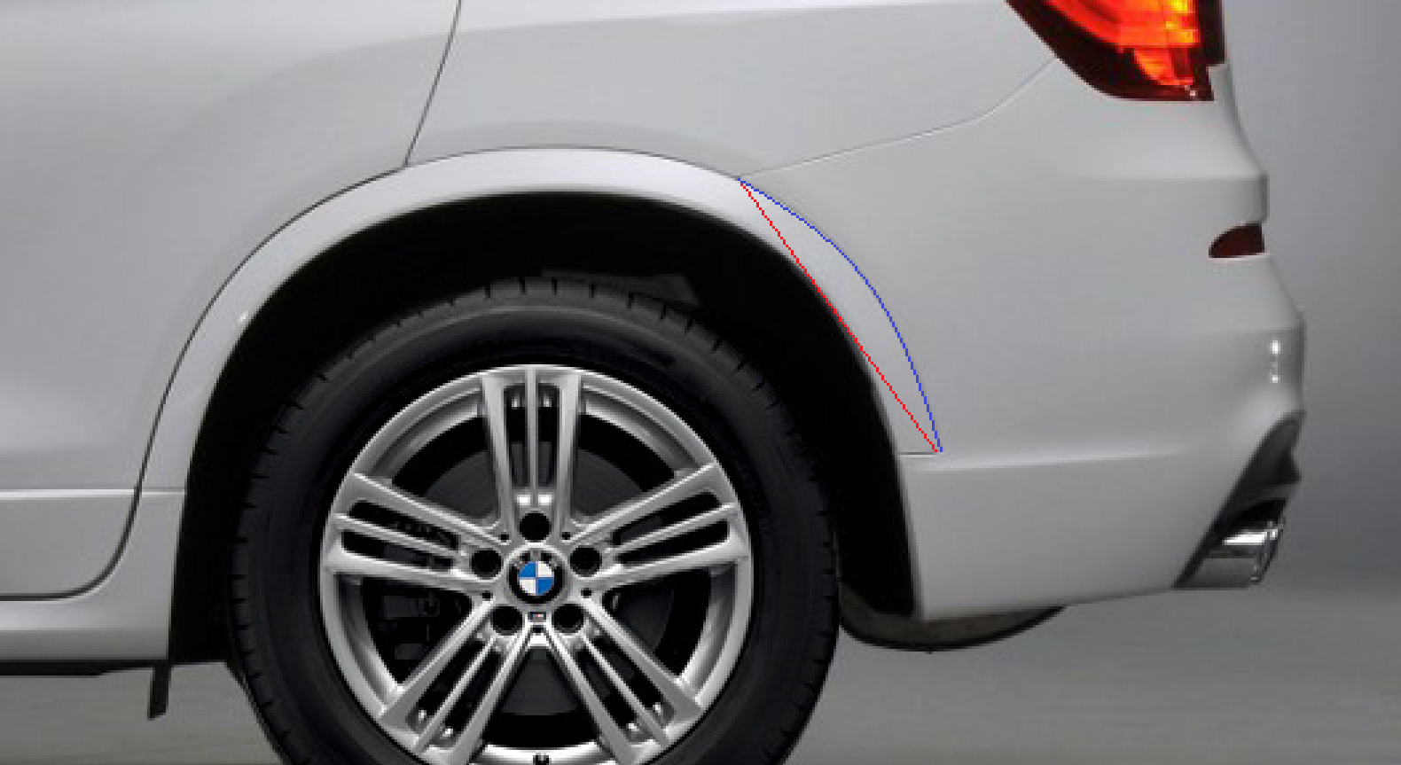 ich würde gerne wissen, wie lange die hinteren Radhausleisten wie am Bild eingezeichnet (einmal rote Diagonale, einmal blauer Verlauf) beim M-PAKET sind.