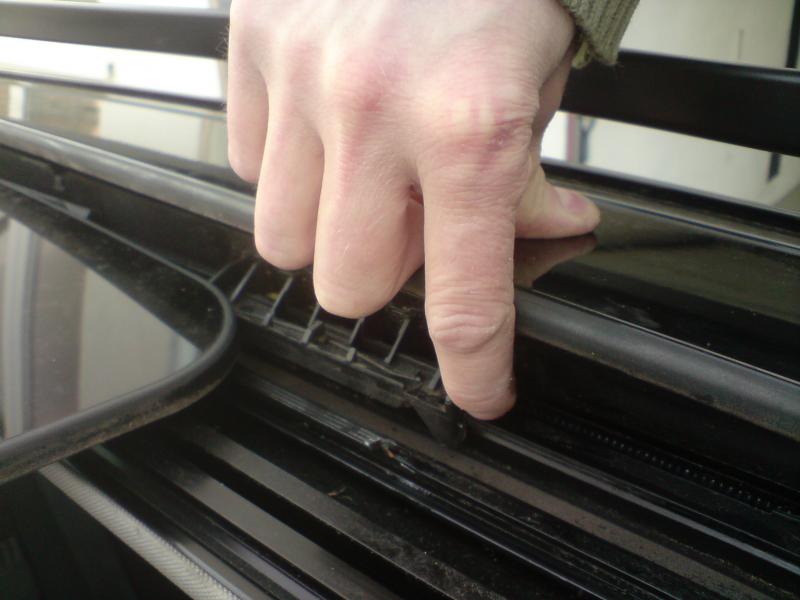 Die Kunststoff Führungen im ersten Glasdach sind zum teil ausgebrochen.