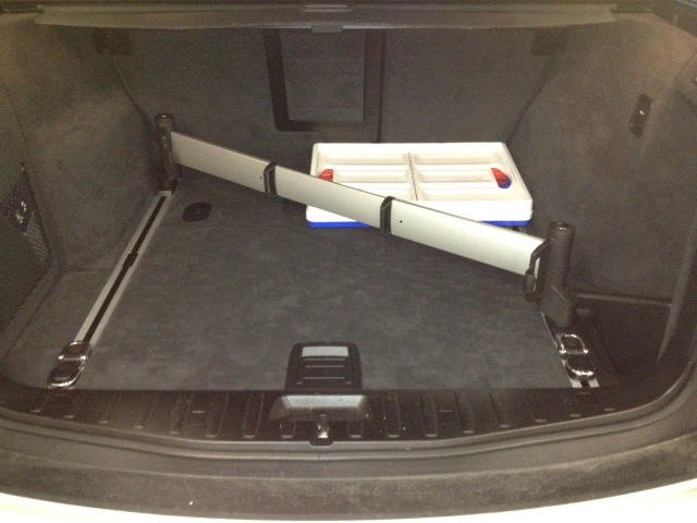 ich hatte übers Wochenende einen A6-Avant. Eine sehr interessante Sache fand ich im Kofferraum. Der A6 hat eine sehr ähnliches Schienensystem im Kofferraum, wie wir im X3. Aber die haben dort nicht nur einhängbare und verschiebbare Haken