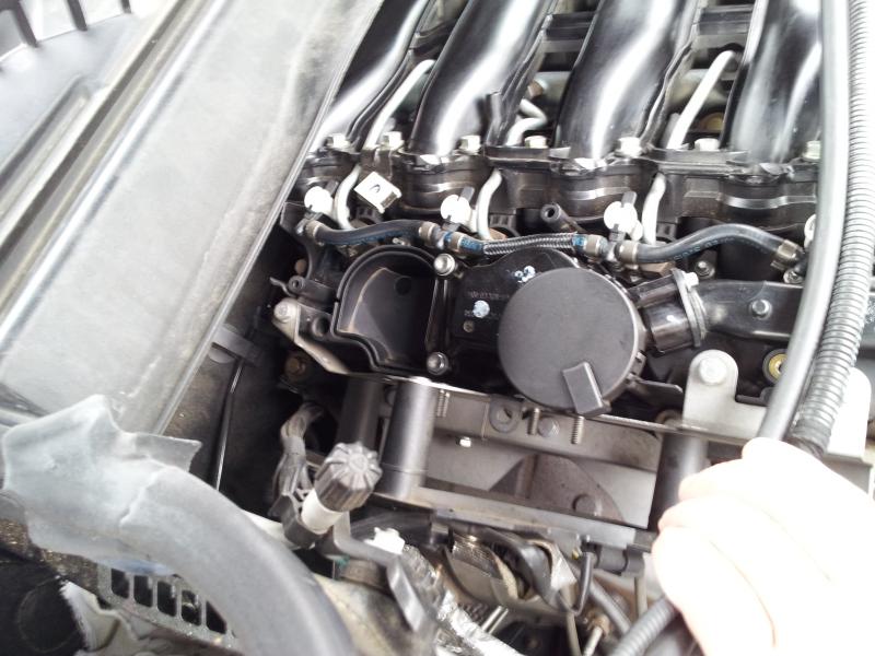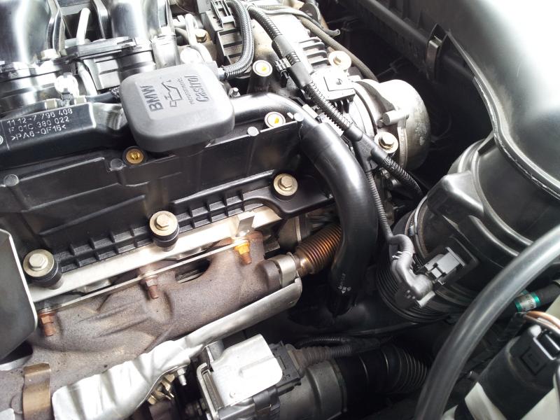 Ich füge mal ein Foto bei. Falls man was erkenne kann. Ich hab die Befürchtung das die Ölspuren von der Ansaugbrücke herkommen.
