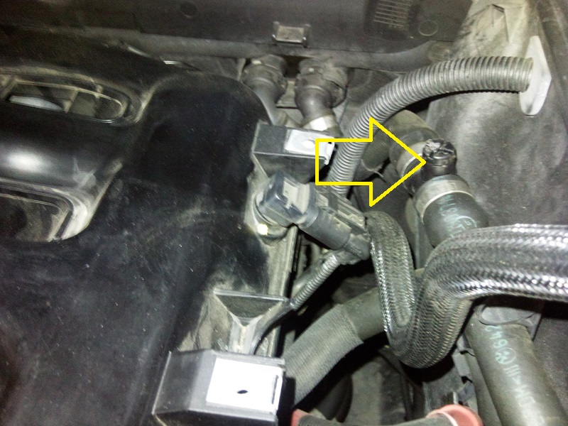Anschluß Entlüftungsschlauch am Ausgleichsbehälter HIER links am Einfüllstutzen zu sehen.