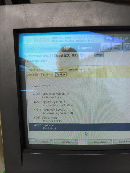 Evt. ein Problem innerhalb des Motorsteuergerätes bzw. des Kabelbaums/Stecker. Fehler 4907 > DDE : Injektoren, Auswahlschalter Steuergerät intern.
