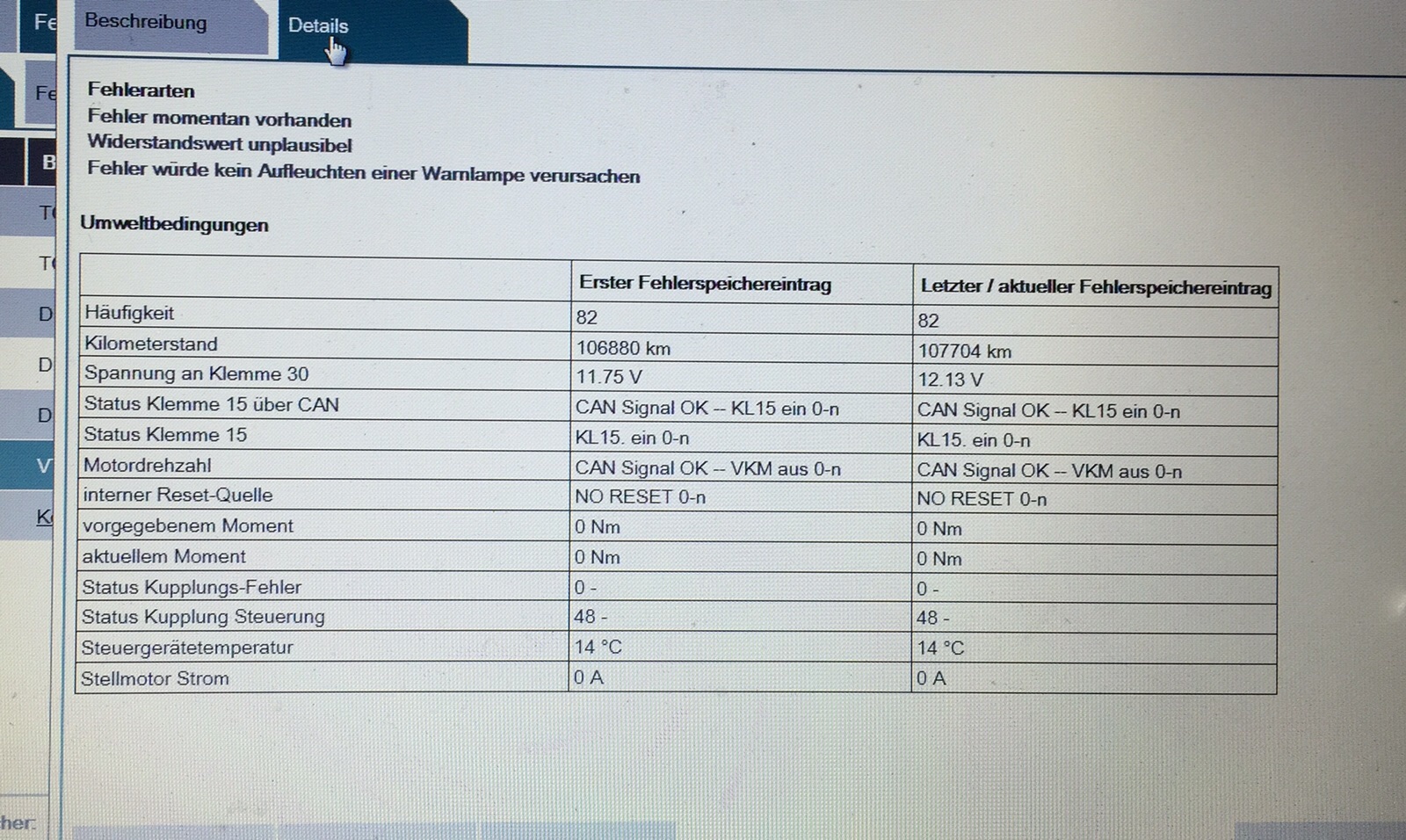 Interessant ist die Fehlerhäufigkeit, die sich zwischen den beiden Fehlerspeichereinträgen nicht verändert hat.