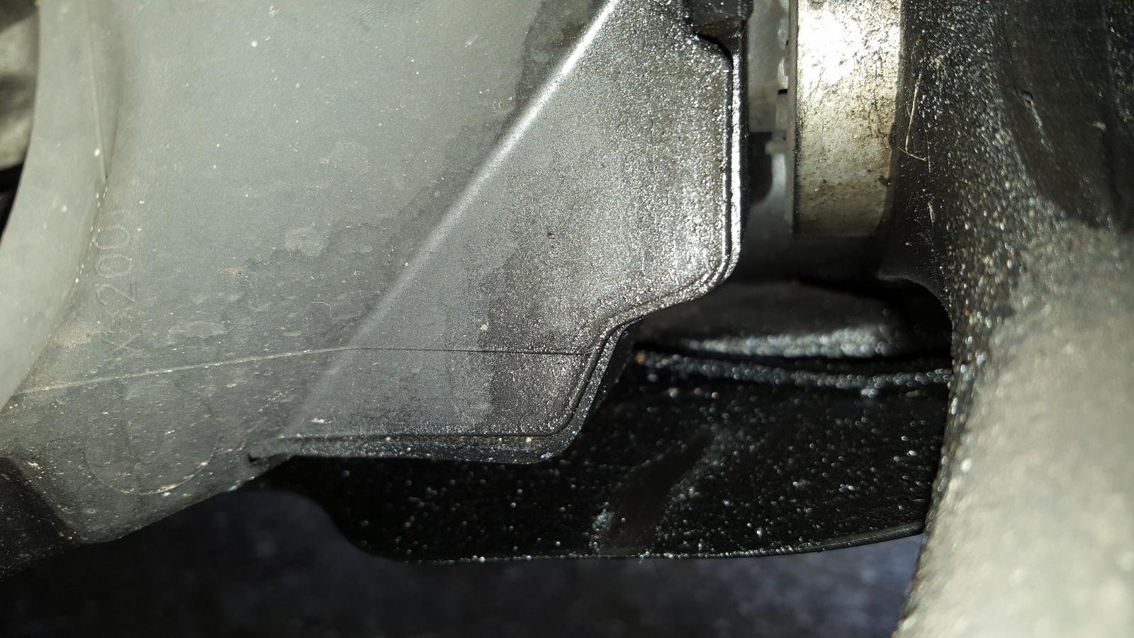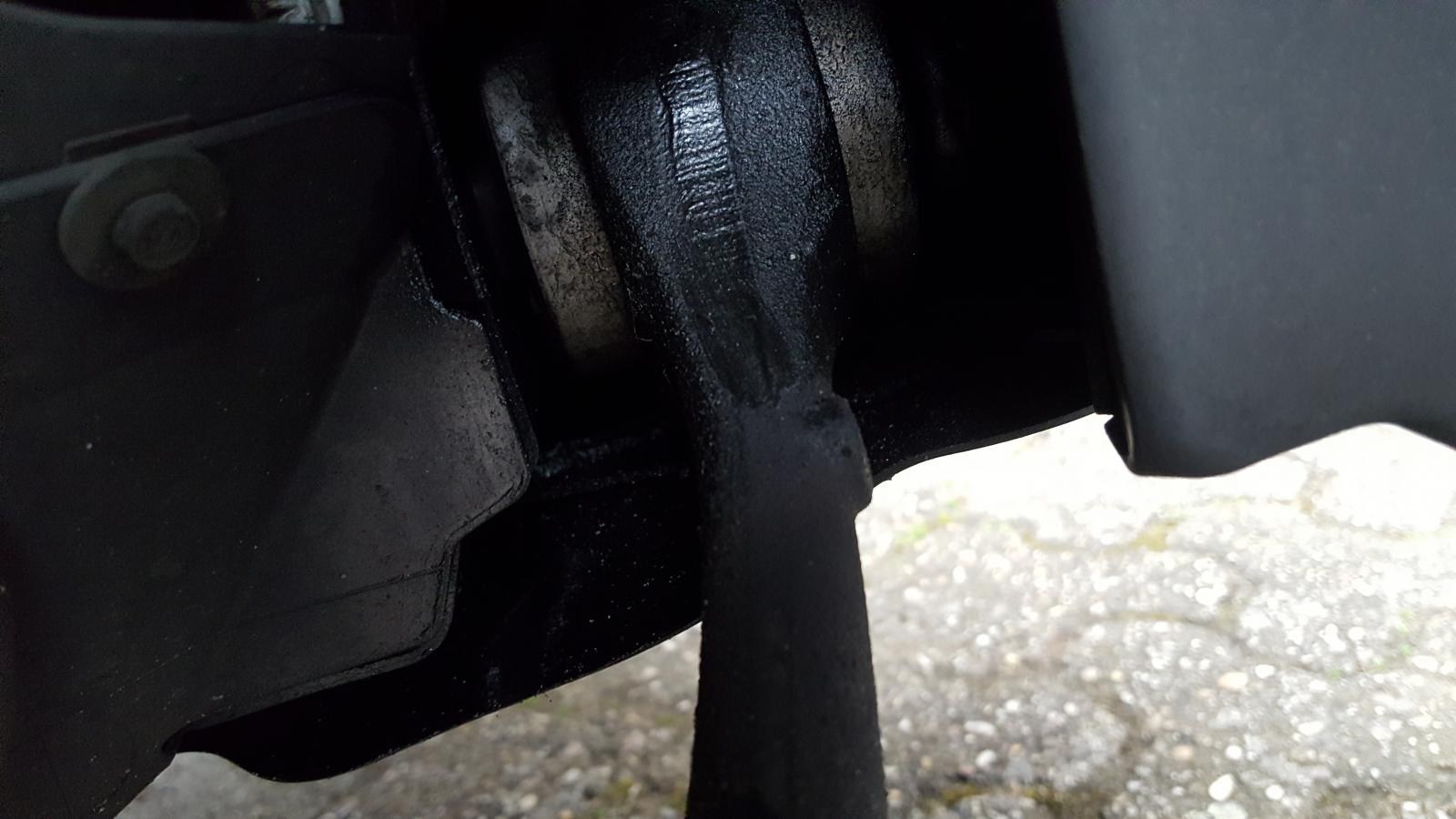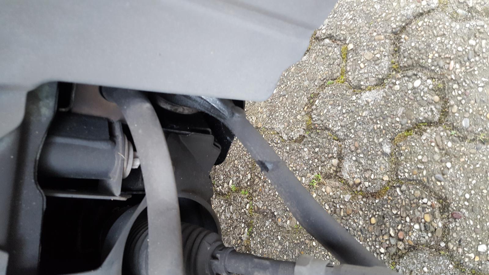 Am Samstag habe ich meine Sommerreifen aufgezogen und dabei ist mir aufgefallen, dass auf der rechten Seite ein schmieriger schwarzer Film an der Verkleidung / dem rechten Querlenker klebt.