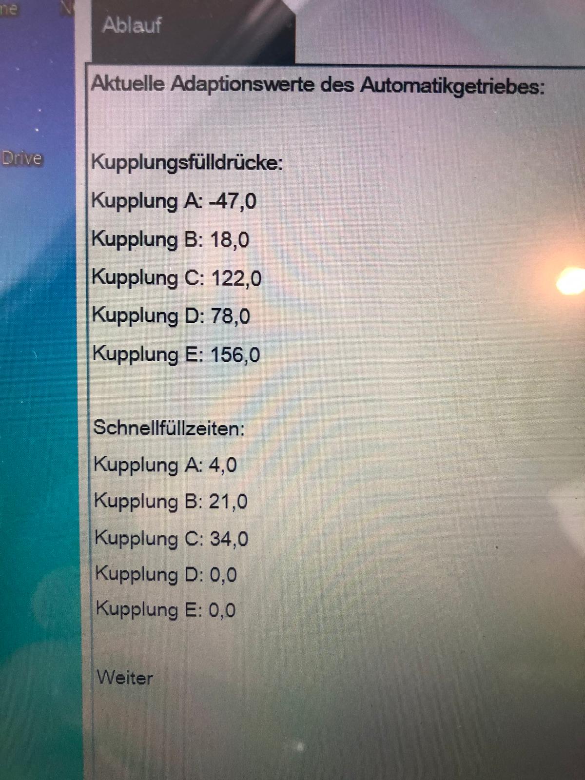 Ich habe nun auch mal meine Adaptionswertdokumentation zur Verfügung gestellt. In der Tabelle sind die Sollwerte die von ZF vorgegeben sind enthalten. Weiter sieht man auch sehr gut, dass sich die Werte regelmäßig den Umständen anpassen!