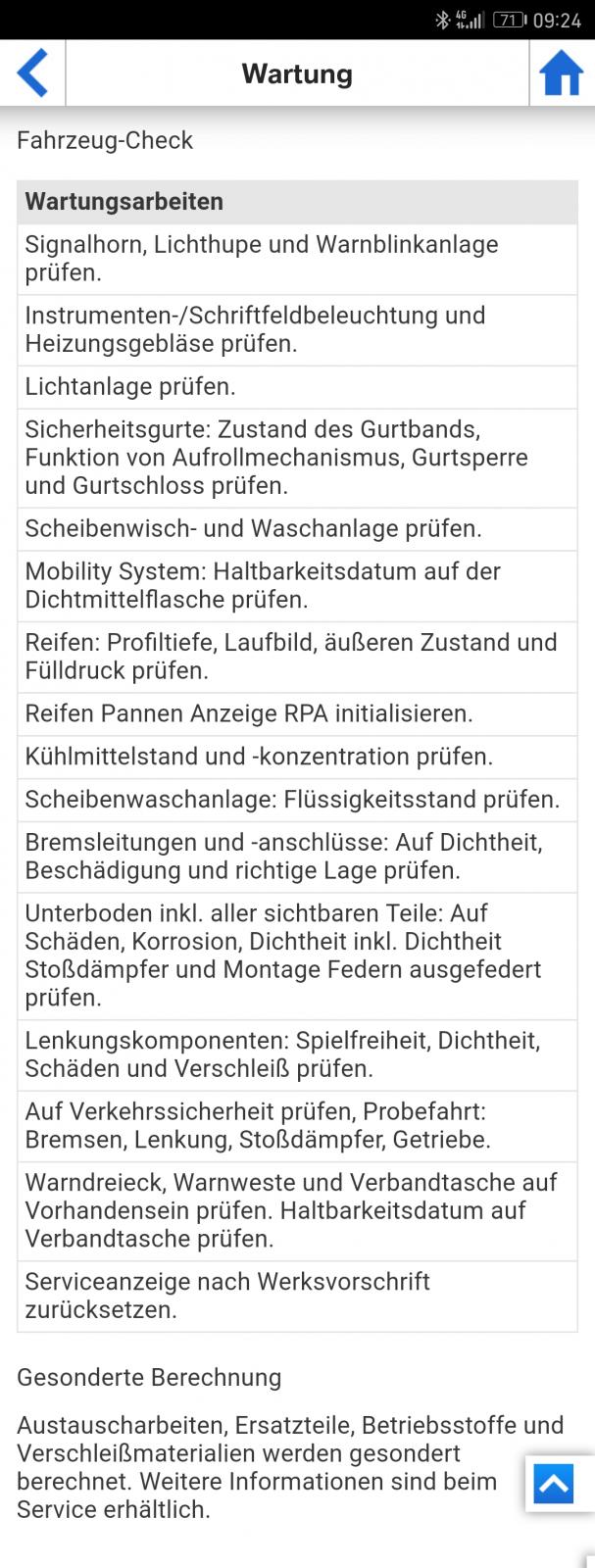 Hab gerade nochmal geschaut, 7stellen meiner Fin, dann wirs die BA heruntergeladen und dann SUCHE - WARTUNG und dann oben ÜBERSICHT: Wartungsumfänge, da steht bei mir dann allea aufgelistet was wann wie zu machen ist. Wenn du mir deine letzten ü stellen per pn schickst kann ich ja mal nachschauen obs bei mir geht (android)