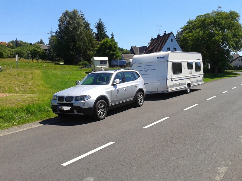 Gespanntechnisch muß ich nach 4 Monaten, 8 tkm, davon 1400 km Gespann sagen : glaub ich hab alles richtig gemacht. Der X-Drive 3.0dA ist sowohl im täglichen Leben als auch für den Gespannbetrieb eine tolle Wahl. Ohne Hänger sehr sparsam bei moderater Fahrweise, Stadt,Land, BAB (unter 8l), Strecke BAB (160 km/h, 8,6l), Gespann (95 km/h : 9,8l; 110 km/h : 11,2l ).