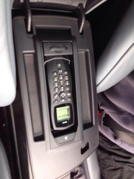 Im E83 habe ich ein altes Autohandy eingebaut - dieses liegt unter der Mittelarmlehne versteckt. Es wird über eine Simkarte betrieben die man etwa 5cm vom Handy entfernt einsteckt.