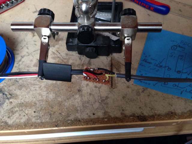 ich habe den großen, mit kunststoffvergossenen Knubbel (Kabelzusammenführung) aufgeschnitten und die Kabels dort gleich verklemmt.