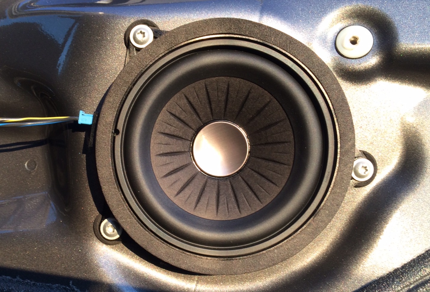 Hier nun noch ein paar Bilder des Einbaus: Türverkleidung mit Kreisen (Clips) und Pfeilen (Torxschrauben, wobei ich bei den Gittern der Hochtöner keine hatte). Gedämmte Türverkleidung mit Gladen AluButyl. Schmutzgitter, Montagegitter und Mulde des USB. Vergleich Original mit Eton: Mitteltöner, jener im Karbonlook ist der Originale. Die Eton Mittelton LS sind je 440 gr, die Originalen 176 gr, die Hochtöner Eton 74 gr und die Originalen 40 gr. Die Magnete sind auch sichtbar grösser. Bitte beachten: ich hatte aus Langeweile Musik gehört, als ich den Fahrersitz löste und da das Kabel des Airbag ein bisschen kurz war, löste ich den Stecker. Sofort erklang ein Gong "Rückhaltesystem...". Ich musste danach den Fehlerspeicher löschen