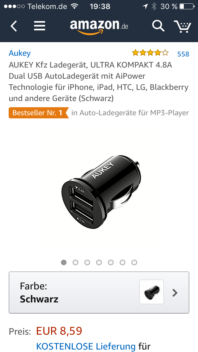 USB Kabel mit kleinem Kopf( sonst geht der Aschenbecher nicht zu) 3,-€ Amazon