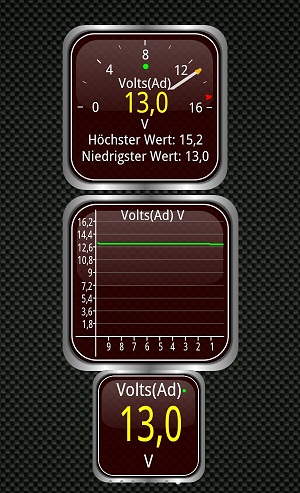 Es wird auch Spannung angezeigt allerdings als OBD Spannung. beispiel anbei auf drei verschiedene Arten