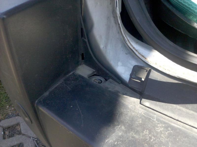1. Schritt: Unter der Heckstoßstange zwei Plastemutter mit 10er Steckschlüssel lößen